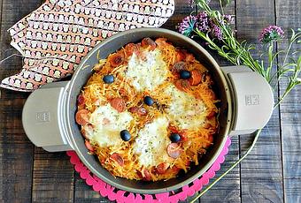 Finalmente cortamos la mozzarella y la colocamos sobre los fideos, añadimos unas aceitunas negras y espolvoreamos una pizca de orégano y llevamos 5 minutos más al horno precalentado a 180º para gratinar.