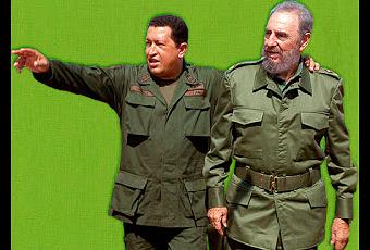 Hugo Chávez y Fidel Castro, dos "bombas atómicas" de vida, que estupendamente es simbolizado por el verde, con toda su vitalidad.