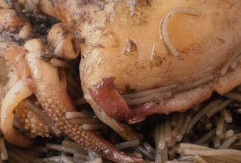 En ésta ocasión emulando el blanco y negro, como si de un Picasso se tratara, he preparado éstos fideos a banda con jibia en su propia tinta.