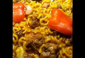En un cazo , calentamos el caldo de ternera . Lo añadimos a la cazuela que lo cubra todo .