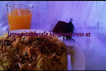 Fideos al vapor con pollo.