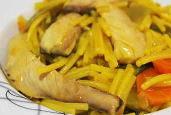 La primavera es la temporada en que podemos encontrar en nuestras pescaderías el verdel o caballa. Este pescado podéis prepararlo sencillamente a la plancha o al horno, también hay quien la prepara en escabeche o en nuestro caso la utilizaremos para hacer esta receta de fideos con caballa y verduras.