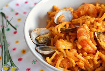 Lo confieso, me chiflan los fideos a la cazuela, y aunque normalmente en casa los preparamos con carne (costillitas y otras cosas igual de lights...) y nos reservamos el toque marinero para fideuás, de vez en cuando tampoco decimos que no a unos ricos fideos con marisco que están de vicio!!