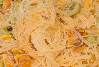 Cocer en agua con un poco de sal los fideos de arroz, el tiempo que indique el fabricante. Luego reservarlos.