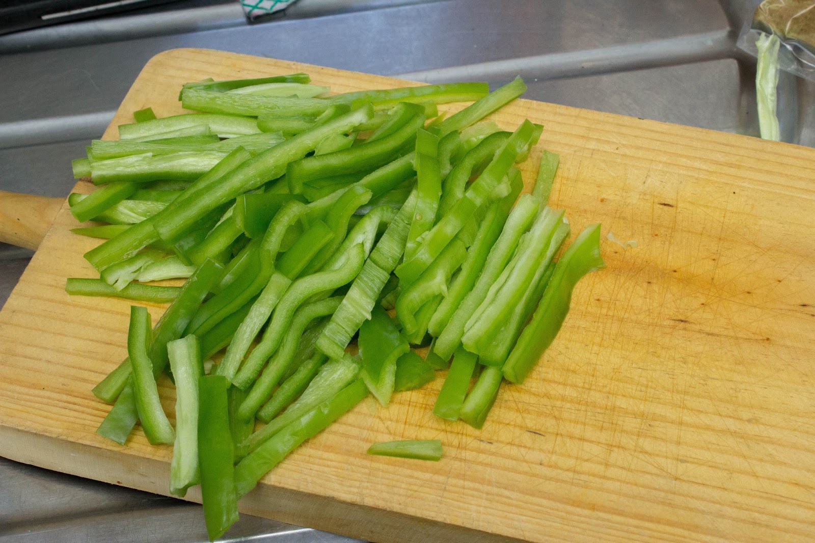 Seguir rehogando el pimiento hasta que esté bien hecho.