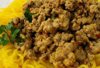 Parece pasta pero no lo es. Son fideos Shirataki de Konjac. Tienen apenas 9 calorías por cada 100 gramos y menos del 3% de hidratos. Además de ser muy saciantes, hacen una función de arrastre muy similar a la del salvado de avena y el agar agar: durante la digestión forman un gel que retrasa la absorción de grasas y azúcares. En esta receta los vamos a hacer con carne y salsa de queso.