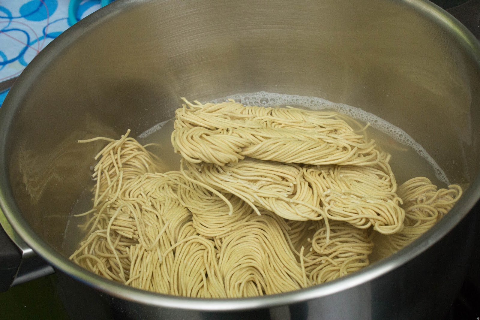 Si ves que es poca agua puedes añadir agua normal hasta que se cubran los fideos.