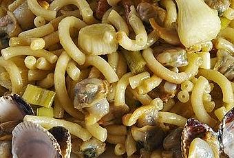 Como ya apuntaba en mi receta de la fideuá de setas, lo de si los fideos para elaborar este rico invento han de ser finos o gordos es uno de esos típicos temas de discusión bizantina cuya solución es hacer cada uno lo que prefiera. En realidad, yo diría que lo único imprescindible a la hora de preparar una sabrosa fideuá es el caldo que debemos utilizar: de pescado, de verduras o de pollo, dependiendo de los ingredientes que añadamos a los fideos. Nunca agua. Pero salvo eso, como en cualquier plato de la cocina popular, las variaciones vendrán dadas por la disponibilidad de ingredientes y por el propio gusto. En esta receta que hoy les ofrezco se mezclan dos sabores fuertes pero delicados: los berberechos, que dan carácter al plato con su irresistible aroma marinero y el contraste levemente picante de los ajos tiernos. La cúrcuma, un condimento extraño para esta preparación, da el toque final a una fideuá un tanto heterodoxa (muchos echarán a faltar el clásico sofrito...) pero muy, muy rica.Ingredientes para cuatro personas400 gr de fideos 500 gr de berberechos2 manojillos de ajos tiernos500 cl de caldo de verdurasEl caldo de los berberechosUn vasito de vino blanco1/2 cucharadita de cúrcumaAceite de olivaSal