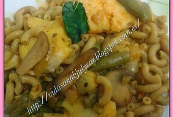 Hoy para comer una fideua improvisada y realmente a salido rica, rica, la volveré hacer mas veces, os la recomiendo es fácil, rápida de hacer y sana sana ademas de baratita :)