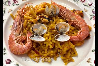"El viernes esperando mi turno en la pescadería, escuché a la chica que estaba delante de mí decir que iba a hacer una fideuá así que quería: berberechos, mejillones y unos langostinos.No sé qué me pasó por la cabeza pero después de pedir lo que tenía pensado, me vi pidiendo lo mismo y diciéndome a mí misma... este finde hago fideuá.Busqué información en libros, internet y sacando de unos y otros, preparé esta fideuá riquísima, solo me faltó el alioli que dicen que acompaña perfectamente.Aquí os la dejo, y a la desconocida que me dio la idea, gracias!."
