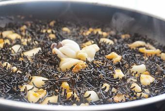 Este fin de semana disfruté de un delicioso fideuá negra con sepia. Compré el fideo negro, ya preparado con la tinta de calamar, da un sabor muy bueno.