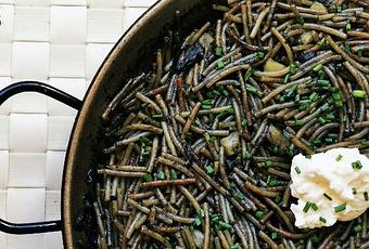 Hoy os traigo una de mis recetas preferidas, la fideuá. En este caso es una fideuá negra con sepia increíble.