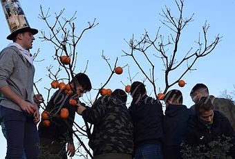 La naranja es un fruto cargado de simbolismo; su color y su forma esférica hacen que se la relacione con el Sol, el astro que dora las cosechas, que hace brotar la vida en árboles y plantas... Los presentes se afanan en coger estas naranjas para consumirlas.