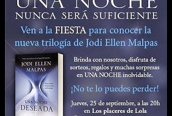 ¿Qué harías si te dijesen que puedes pasar UNA NOCHE inolvidable? La editorial Planeta te invita a que les acompañes en la fiesta presentación de la nueva trilogía que hará temblar el mundo de la erótica. Se trata de la nueva saga de libros de Jodi Ellen Malpas, quien nos visitó el pasado mes de febrero en el Encuentro de Romántica Adulta de Madrid. Habrá sorpresas, regalos, y muchas cosas más en Los Placeres de Lola, una tienda de lencería que me parece el marco perfecto para esta magnífica ocasión.