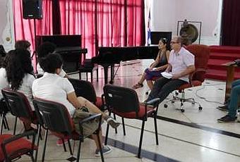 En la mañana de este lunes, los jóvenes músicos disfrutaron la presencia de la destacada flautista y pedagoga Niurka González, quien ofreció la conferencia “La sonoridad en la flauta”, a través de la cual abordó temas referentes a los aspectos físicos que inciden en el sonido de dicho instrumento.