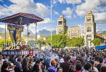 La generosa ciudad de Huaraz se llena de alegría y fervor religioso del 22 de abril al 12 de mayo, período en el que se desarrollan misas, procesiones, festivales de danzantes y actividades tradicionales que forman parte del legado histórico de la región.