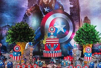 @happy.dateUn imponente Capitán América, Héroe justiciero para conservar la paz en esta exquisita fiesta con muchos dulces personalizados que parecen ser custodiados por el personaje favorito del cumpleañero