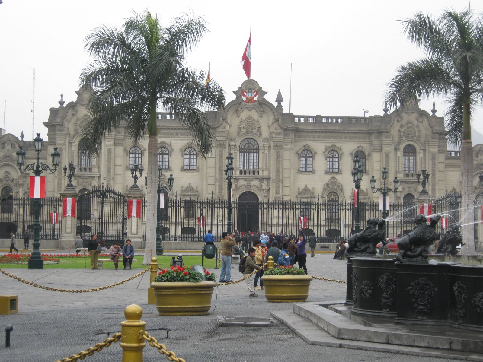 La plaza de Armas siempre es el punto clave de visistas en el centro de Lima, se pueden observar muchoas personas, algunos visiblemente visitantes de alguna provincia hermana, otros extranjeros (hoy vi argentinos, españoles, estadounidenses y otro que no pude identificar) y muchos residentes de Lima que (como yo) se tomaron un tiempo para ver el renovado centro histórico.