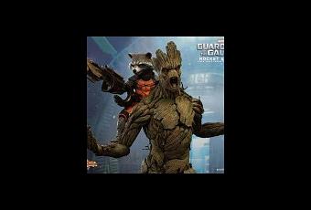 Para preparar a los fans para el estreno mundial de esta película, Hot Toys está emocionada de presentar un conjunto de figuras coleccionables de escala 1/6 que incluye a Mapache Cohete armado hasta los dientes y a su músculo y planta personal Groot. La figura coleccionable de Cohete basada en la película está diseñada especialmente basándose en el aspecto único del personaje en el filme. Cuenta con una cabeza y un cuerpo esculpidos con detalle, un traje hecho a medida, armas y una base diseñada especialmente para la ocasión. La figura coleccionable de Groot basada en la película cuenta con una cabeza y un cuerpo de gran detalle con una increíble aplicación de pintura para reflejar su característica apariencia, y una base diseñada especialmente para la ocasión. El set incluirá de forma exclusiva una cara adicional con expresión de enfado y un par de manos con los puños apretados para Groot.