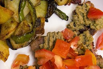 Hoy os propongo una receta de atún con pate arbequino acompañado de patatas al romero. Son dos recetas en una, sabrosas y sencillas de hacer.