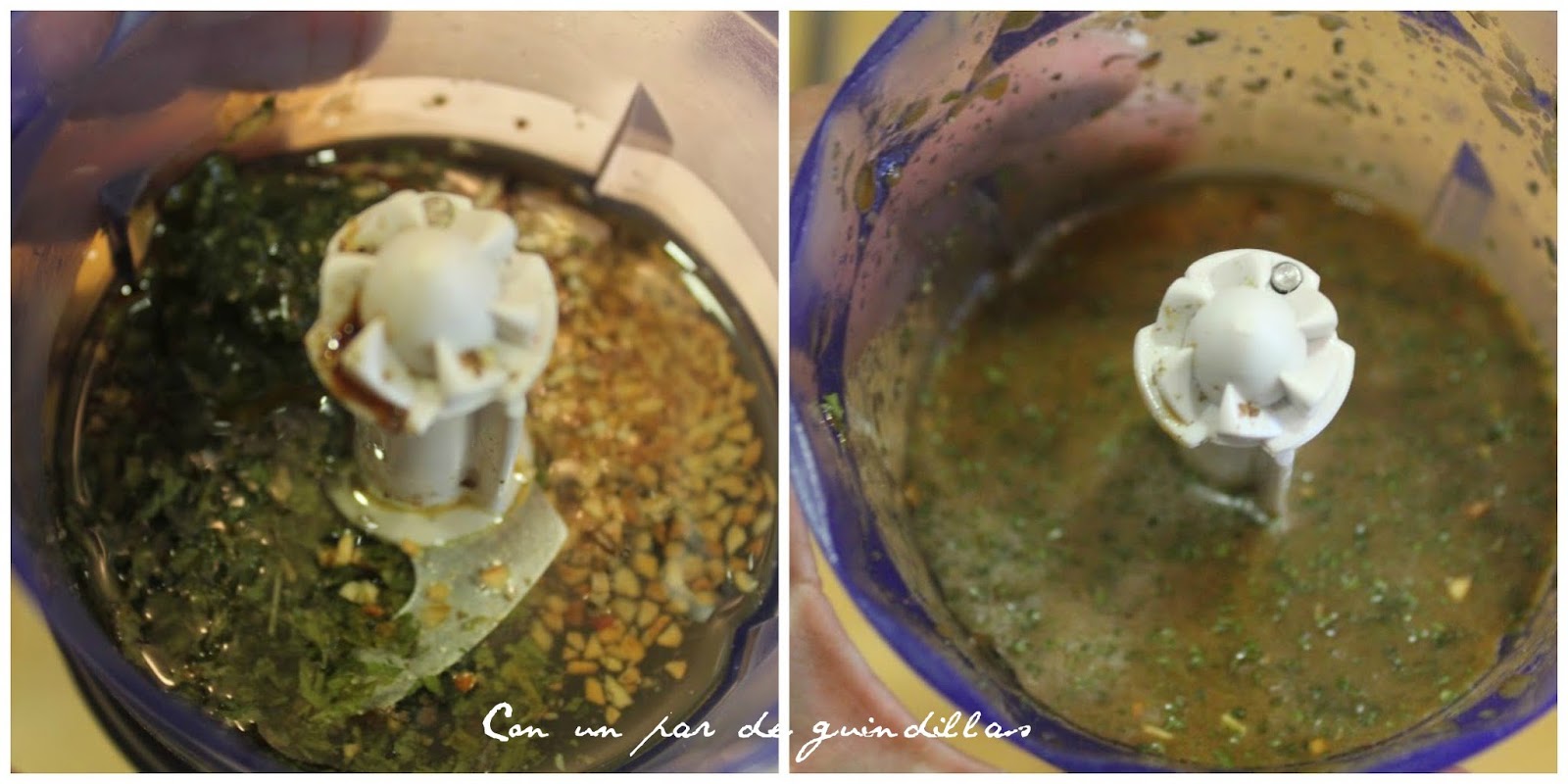 PREPARACIÓN: 1.- Pongo todos los ingredientes en el vaso de la batidora y mezclo bien. Reservo media taza de la salsa.