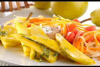 Se trata de un filete de pescado a la jardinera el cual proporciona 230 Kcal. el cual te ayudara mantener la linea mientras te alimentas saludablemente.
