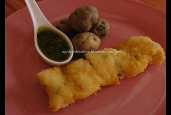 En verano apetece degustar platos sencillos y, sobre todo, a base de pescado. Vamos hoy a preparar un empanado fácil, acompañado de unas papitas negras que me regalaron y aliñado con un mojo verde recién hecho.