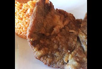 Elaboración: Mientras vamos preparando el arroz a la milanesa, nos ponemos a empanar el filete. Primero en un bol batimos el huevo, a parte en otro bol ponemos el pan rallado, el ajo rallado y una pizca de perejil picado. Pasamos el filete al que hemos agregado sal al gusto por el huevo y a continuación por el pan rallado. Ponemos el aceite en una sartén a fuego fuerte y una vez caliente disponemos el filete empanado en él. Freímos el filete por los dos lados y listo. Para acompañar el arroz a la milanesa.