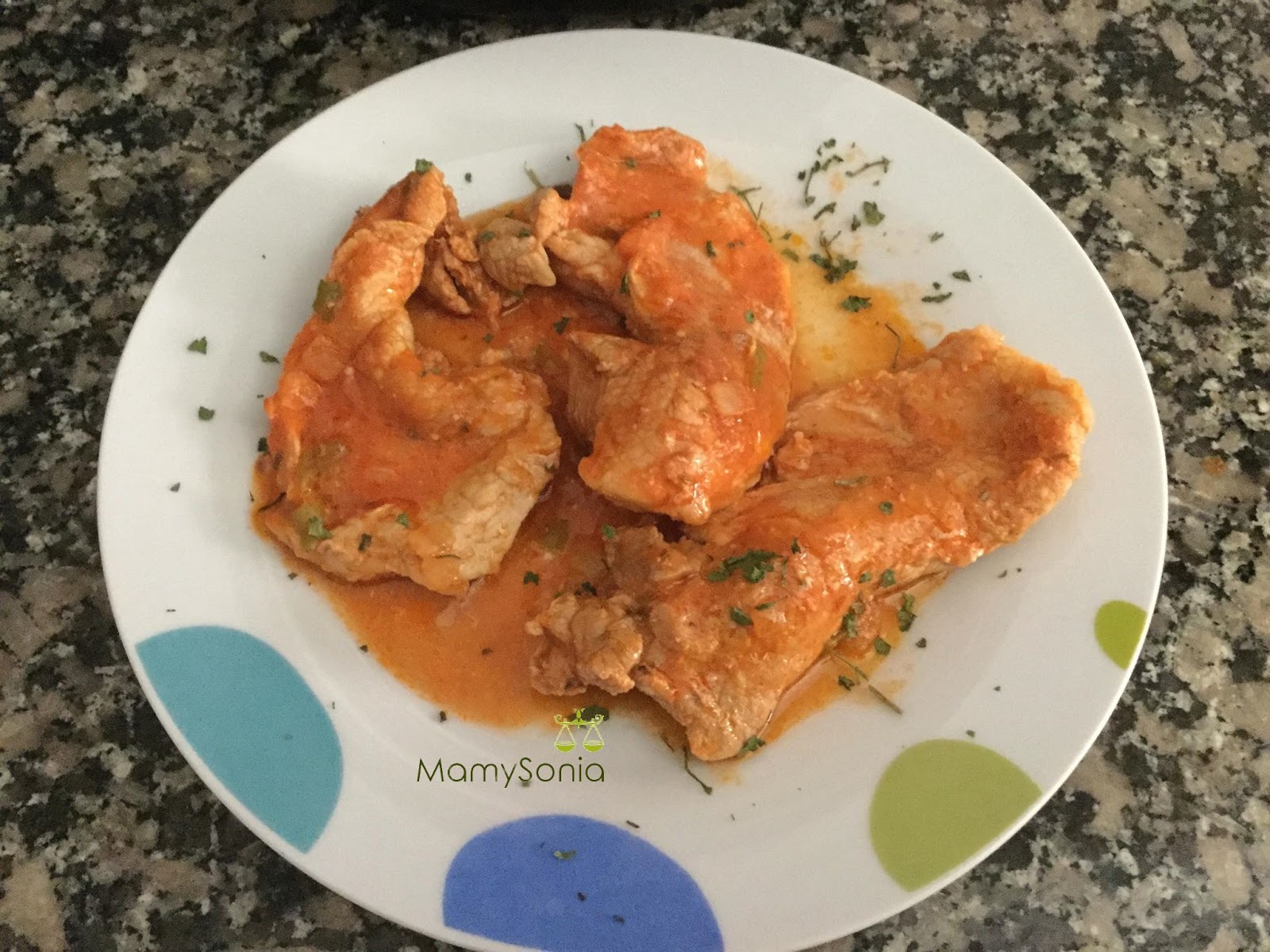 Con el sofrito listo agregamos los filetes, la sal la pimienta, las especias y el tomate frito