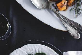 - Servimos en una fuente junto a la guarnición de calabaza asada y el resto de pasta de anchoas y sésamo negro. Servir y a disfrutar de este rico plato.