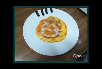 La manzana no sólo sirve para hacer tartas o para acompañar el foie, ya que sus virtudes en la cocina, aparte de alimentar, nutir, enriquecer, refrescar, o hidratar, la hacen capaz de cambiar el sabor y las texturas de un plato. Incorporar una variedad apropiada de manzana a una receta nos puede proporcionar el toque dulce o ácido que buscamos, frescor, jugosidad, etc...Podemos elegir entre una gran variedad con distintas características, dulces, agridulces, ácidas… cada vez son más las distintas clases que encontramos en el mercado, Y si hablamos de cocinarlas, aunque al fin y al cabo todas las variedades se pueden someter a un método de cocción, las hay que mantienen más el cuerpo y las que casi se deshacen.Yo en esta ocasión he usado la variedad golden extra...Vamos a ver cómo...