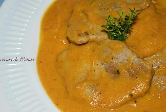 Trituramos el sofrito, le añadimos los filetes de lomo y cocemos todo junto otros 10 minutos.
