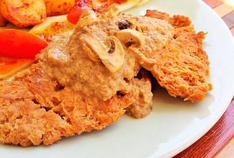 - Escurrimos bien los filetes, los salpimentamos y freímos con un poco de aceite caliente por ambos lados. Servimos con las salsa de champiñones.