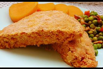 ♥ 1/2 taza de soja texturizada fina♥ 3 cdas de gluten de trigo♥ 1 taza de caldo vegetal♥ 2 zanahorias♥ 1/2 cebolla♥ 2 dientes de ajo ♥ 1 cdta de pimentón ahumado♥ 1/2 cdta de sla♥ una pizca de pimienta♥ 1 cda de aceitePara empanar:♥ 1/2 taza de harina de garbanzos♥ agua♥ 1/2 taza de pan rallado