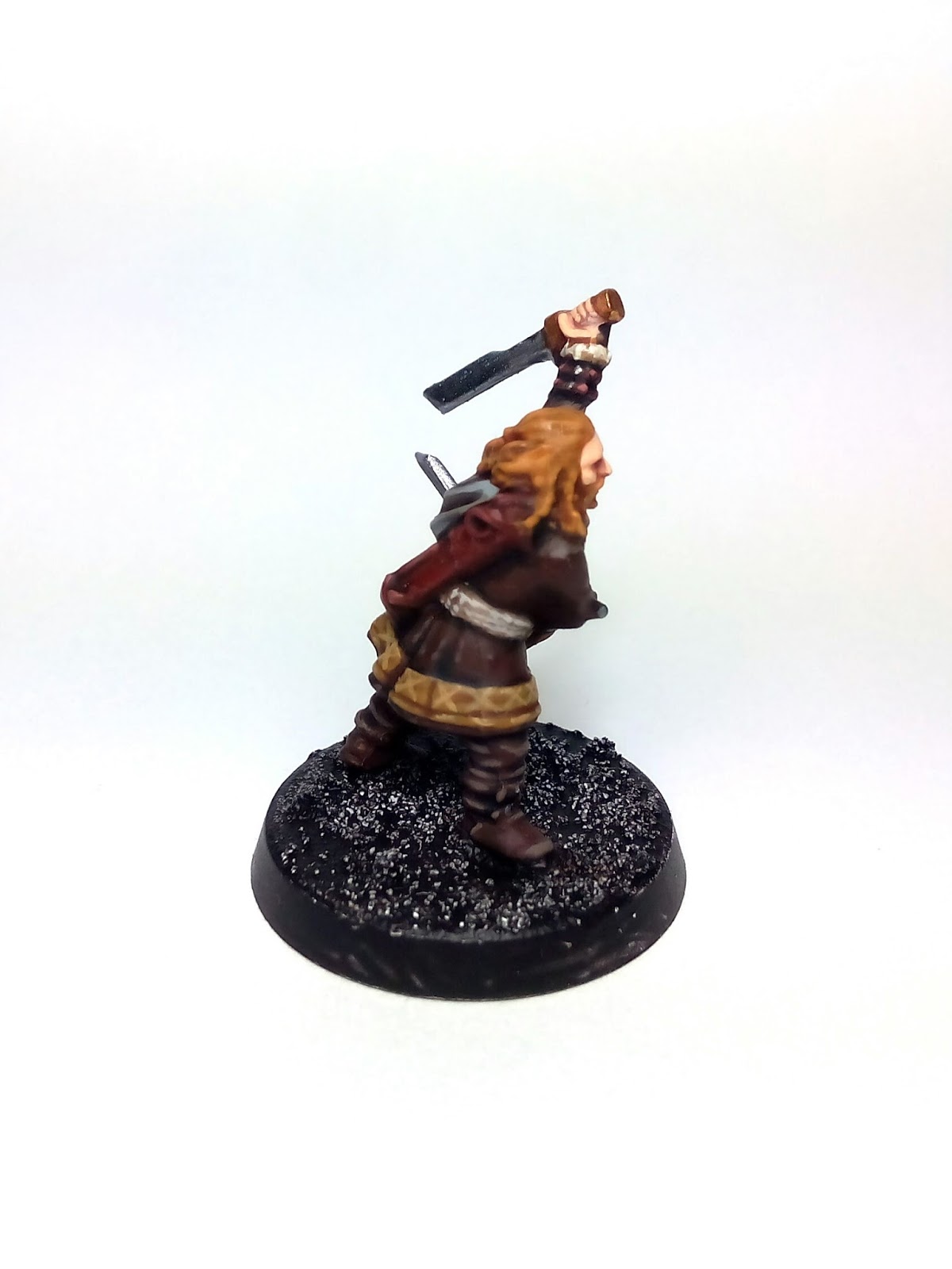 Desde luego, entre las miniaturas de la Compañía de Thorin parece haber diferentes escultores. la sencillez de esta figura destaca ante la complejidad de otras como Dwalin. Si hay algo que no me gusta es la discrepancia de escala o calidad entre figuras de un mismo juego, y mucho menos de una misma facción, como es la compañía.