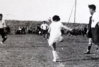 La hija del presidente, Luisita, que a la sazón tenía 11 años acudió arreglada para la ocasión, con una media melenita peinada a la última moda, un vestido de color blanco purísimo con ribetes celestes, zapatitos de charol y medias también blancas. Ella fue la encargada de dar el punterazo de honor por la Internacional, equipo al que había correspondido el saque inicial en el sorteo.Luisita Montagud pasaba a la historia local de ese «bello» deporte de una sola, aunque grácil, patada al «esférico». La imagen que reproducimos, por gentileza de la familia Reverte Montagud, es un maravilloso documento gráfico de ese instante fugaz. El encuentro tuvo reflejo en la prensa nacional; La Libertad publicó, el 23 de mayo de 1923, la primera crónica –que tengamos conocimiento– del equipo de fútbol del municipio. El «once» del Getafe Deportivo, estaba formado por Martín, Rodríguez, Zugázaga, Calvo, Rusiñol, Pastor, González, Fenollar, Bueno, Queral y Ocáriz. La Internacional Deportiva de Madrid, el equipo contrario, presentó la siguiente alineación: Labandoehore, Salgado, Morales, Tárraga, Molinero (N.) Molinero (P.), Ovicia, Jiménez, Trifino, Pasca y Pérez.