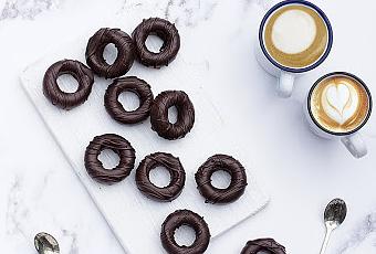 Mezclar, en este orden, la leche con el azúcar y el aceite. Incorporar, tamizados, la harina, la sal, el cacao y la levadura y mezclar bien. Verter en el molde de mini donuts. Yo he utilizado unos que tengo de silicona, desmoldan a la perfección. Si no tienes de silicona engrasa bien el molde. Hornea, horno precalentado con calor arriba y abajo, a 200º 10 minutos. Deja enfriar por completo sobre una rejilla. Una vez fríos derrite el chocolate con el aceite en el microondas en tandas dwe 20 segundos y baña los filipinos en el mismo. Deja enfriar por completo sobre una rejilla.