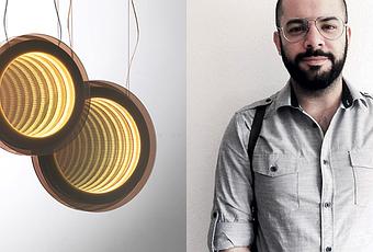 Filippo Mambretti e “Infinita” mirror + lamp para Mogg (2017).