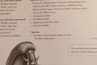 Una entrada rápida como el rayo antes de seguir. Me acaba de mandar Skie esta foto al mail. NO se de donde sale, pero no es un fake, de eso estoy seguro.Al parecer, se ha filtrado parte del contenido del siguiente libro de la herejía de Horus de Forge world, Malevolence, y este es el perfil oficial de Jaghatai Khan, Primarca de los Cicatrices Blancas.