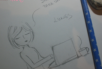 Este fin de semana ha tocado reorganizar un poco todo, como aún no tengo una foto decente para presentarme os dejo un boceto de como he pasado estos días, sobre todo he navegado por pinterest horas y horas, buscando ideas para mis encuadernaciones.