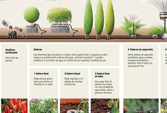 Los otros dos sistemas posibles de riego, en términos generales, son la aspersión con un 80% de eficiencia y la microaspersión, con un 90% de efectividad. A la hora de poner estos sistemas y los ya mencionados en marcha podemos acudir a un equipamiento complementario que nos ayudará a ajustar la eficiencia y el ahorro de energía y de agua.