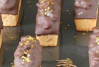 Derretimos el chocolate con el aceite, mezclamos. Bañamos de chocolate solo la mitad de cada financier.