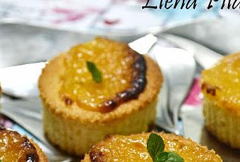 - Retiramos la bandeja de horno y vertemos una cucharada de crema de limón en el centro de cada tartaleta.