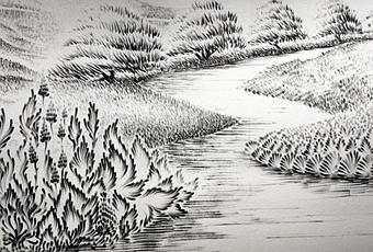 Usando solamente sus dedos y polvo de carbón, la artista Judith Ann Braun crea maravillosos paisajes y diseños abstractos titulados Finger Drawing.