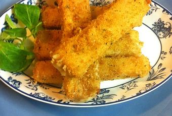 Se cortan las lonchas gordas de queso en varitas o palitos como de un dedo de grosor (de ahí el nombre). Se pasan por harina, huevo batido y, por último por pan rallado.