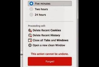 El pasado 10 de noviembre, Mozilla Firefox cumplió 10 años de existencia, lanzó la versión 33.1 que incluye el botón Olvidar lo cual es un intento de la compañía para mejorar la seguridad de sus usuarios, el boton Olvidar sirve para borrar los últimos 5 minutos, 2 horas ó 24 horas de navegación, toma en cuenta que cerrara todas las ventanas y abrirá una nueva ventana en blanco.Para activarlo haz clic en Menu / Customize luego arrastra el boton Olvidar ha tu Menu en la parte derecha, luego haz clic en Salir y Listo, ahora cuando presiones el boton de Menu veras el botón de Olvidar o Forget que te permite borrar los ultimos momentos de navegación como se muestra en la imágen agregada a este post.