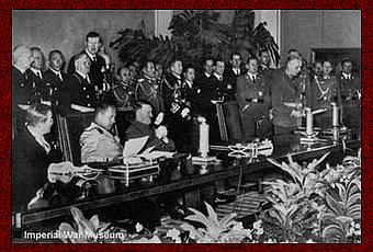 En Tokio, el General Hideki Tojo celebra una fiesta con la presencia de los embajadores alemán e italiano.Después de la ceremonia oficial, el Führer ha invitado a los firmantes a una recepción de estado en la que los embajadores de Italia y Japón han recibido una atención especial. El “Pacto Tripartito” o, como el Völkischer Beobachter lo ha dado a conocer: el “Pacto de Alianza de los pueblos con 250 millones de habitantes”, ha quedado rubricado, con lo que el Eje, la más poderosa Alianza sobre la faz de la tierra, acaba de ser constituido. Y enfrentado a este poderoso Eje, sólo Inglaterra se opone desde su solitaria isla.
