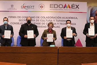 Huixquilucan, Estado de México.- La Secretaría de Cultura y Turismo, el Consejo Mexiquense de Ciencia y Tecnología (Comecyt) y la Universidad Anáhuac firmaron un convenio de colaboración académica, el cual permitirá contribuir a la formación profesional de las y los mexiquenses.
