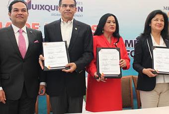 Huixquilucan, Estado de México.- Con el propósito de impulsar ferias de productoras regionales mexiquenses, promover políticas transversales orientadas a apoyar la generación de empleos y el emprendimiento, la Secretaria del Trabajo del Estado de México, Martha Hilda González Calderón, firmó un convenio de colaboración con la Presidenta estatal de la asociación civil Mujeres Emprendedoras Transformando a México (METME), Brenda Karina Aguilar Medina.En presencia del Secretario de Desarrollo Económico, Enrique Jacob Rocha, y el Presidente municipal de Huixquilucan, Enrique Vargas del Villar, quienes suscribieron como testigos de honor, se dio a conocer que se impulsará la creatividad e innovación comercial, se alentará la formalización y se detectará las necesidades de las emprendedoras para favorecer el crecimiento de las pequeñas y medianas empresas de mujeres en la entidad.González Calderón afirmó que en el Estado de México se sabe del valor de la unión entre los actores del sistema productivo, por ello, se buscará mantener comunicación directa y constante con asociaciones y sectores de la producción para continuar impulsando acciones en beneficio de la población.Al respecto, recordó la firma del Acuerdo para el Fortalecimiento de la Alianza Laboral Mexiquense, que encabezó el Gobernador del Estado de México, Alfredo Del Mazo Maza, y que es un instrumento que formaliza el compromiso para realizar diversas acciones entre autoridades, representantes sindicales y empleadores para que el aparato productivo se encuentre trabajando.Por su parte, Brenda Karina Aguilar Medina y Patricia Valdivielso Salcedo, Presidentas estatal y nacional de METME, respectivamente, coincidieron en que se trabajará por el bienestar social de las mujeres mexiquenses, con el apoyo de la Secretaría del Trabajo, que capacitará a 200 mujeres de Huixquilucan, Jilotzingo y Naucalpan, y que impulsarán el programa Apoya a una mujer emprendedora.En el evento estuvieron presentes la titular del Consejo Estatal de la Mujer y Bienestar Social (CEMyBS), Melissa Vargas Camacho, el Consejero de la Judicatura, Gerardo de la Peña y el Presidente de la Confederación de Cámaras Industriales de los Estados Unidos Mexicanos (Concamin), Francisco Cervantes.También los presidentes de los congresos del Trabajo y Laboral del Estado de México, José Luis Canchola y Óscar Moreno, Abel Domínguez Azuz, Secretario General de la Confederación de Trabajadores y Campesinos en la entidad (CTC), así como María de Lourdes Medina Ortega, Presidenta del Consejo de Cámaras y Asociaciones Empresariales del Estado de México (Concaem), entre otros.