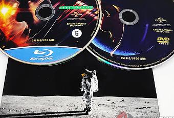 Si hablamos de la edición steelbook nos encontramos ante una edición preciosa, con unos tonos grises y la temática de la conquista del espacio se trata de un steelbook bien acabado que incluye un disco DVD exclusivo de extras. En la parte delantera tenemos un fotograma del paseo lunar, la parte trasera del steel representa la huella de la primera pisada del hombre en la Luna mientras en el interior vemos un fotograma del despegue del cohete espacial Apollo XI.